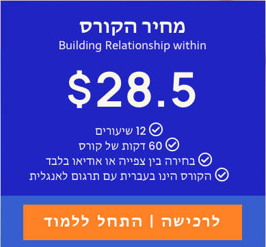 הקורס כולל 12 שיעורים מקצועיים, בעברית עם תרגום לאנגלית (במידת הצורך), הקורסים מוקלטים מראש ודפי הנחייה זמינים להורדה.